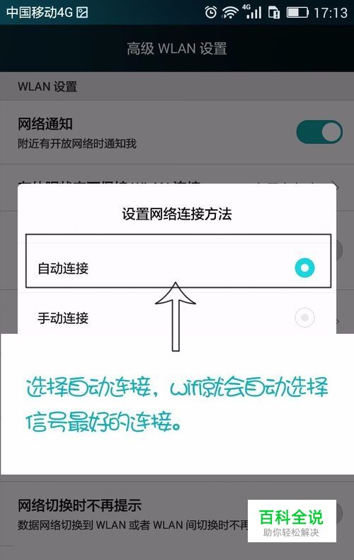 WIFI首选5-设置网络连接设置,为自动连接,wifi就会自动选择信号最强的信号。那可能是你自己家,或是公司里的WiFi。