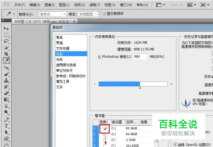 方法5:把ps的缓存盘改到空闲最多的盘。