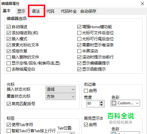 这就是编辑器设置的对话框,我们点击语法
