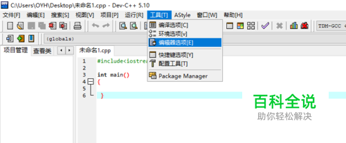 首先我们打开dev 软件,然后点击工具-》编辑器设置