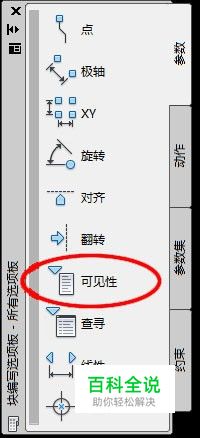 进入块编辑器,在“块编写选项板”的“参数”一栏中点击“可见性”。