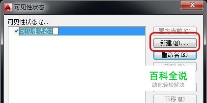 点击“新建(N)...”后弹出“新建可见性状态”对话框。将新的状态命名为“螺钉俯视图”。新状态的可见性选项选择第一个“在新状态中隐藏所有现有对象”。两次点击确定后返回块编辑器。