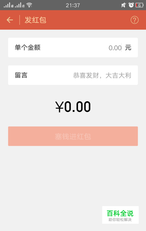 点击红包,进入红包界面,这里只能发单个红包,如图