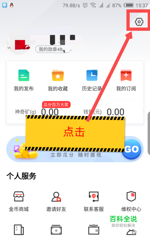 在打开的我的界面,点击右上角的设置选项。如图所示