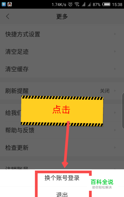 会弹出一个窗口,可以选择退出账号,或者换个账号登录。如图所示