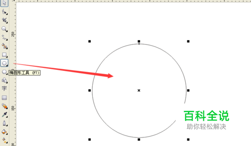 第五,删除圆形。最后如需要删除圆形外框,框选图形,右键,“转换为曲线”,然后左键单击圆形,按删除键,即可删除。如图,