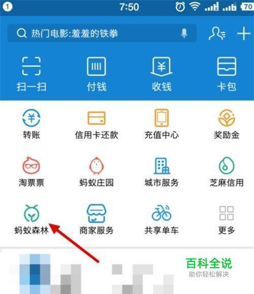 首先打开“支付宝”,点击“蚂蚁森林”。