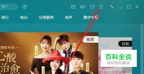 在电脑上打开QQ音乐,点击软件主界面右上角的“菜单”按钮。