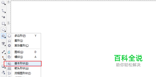 我们打开cdr软件,在左侧工具栏选择"基本形状"工具,如图所示;