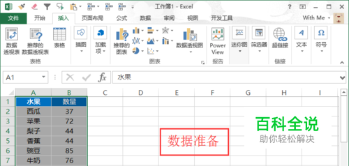 准备好测试数据,在A列输入“ 水果”,在B列输入“ 数量”。在水果处任意输入名称及数量。