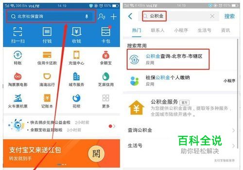 首先打开支付宝首页,在搜索框内输入“公积金”,就会跳出一个公积金的应用。