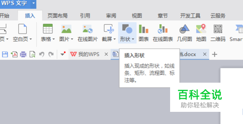 打开Word文档,点击“插入”,找到“形状”,点击它。