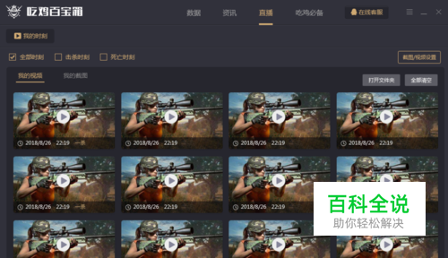 视频及截图被录制完毕之后,将会在吃鸡百宝箱客户端的“我的时刻”功能中展示