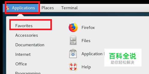 输入密码登陆以后,点击左上角的applications,然后鼠标移动到favorites,可以看到一个terminal字样的黑色图标。点击它,就启动了一个终端界面,如下面图中所示: