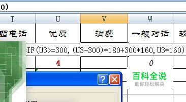 根据上面我说的计算逻辑,分别输入表达式如图,其中U3就是优质那一栏其中一个单元格值(即优质数),第一行表达式判断优质数是否大于等于300,第二行判断为是时结果为不足300部分按单价160与优质数相乘,加上超出部分按单价180与优质数相乘,第三行判断为否时就按单价160与优质数相乘