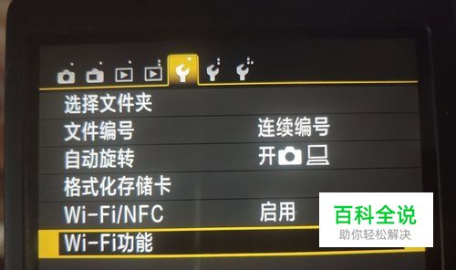 第二步,启用相机上的“Wi-Fi/NFC”,接下来打开“Wi-Fi功能”