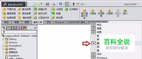 在CommandManager上面点击右键,激活“模具工具”命令工具栏
