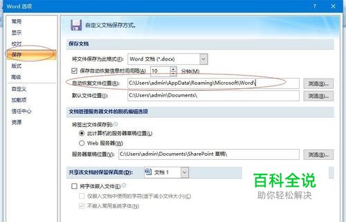 Word文档丢失恢复 1、自动恢复(即word中的自动保存功能“工具—选项—保存”) 首先我们可以利用Word自动恢复的功能,打开word任意文档,点击菜单栏“word选项”,软件会弹出一个选项卡,选择“保存”那一项,我们可以看到有一项为“自动恢复文件位置”(红圈所示),点击“浏览”就可以看见自己先前编辑word产生的临时文件了,找到自己未保存的双击打开后确认内容无误后选择另存为保存即可。
