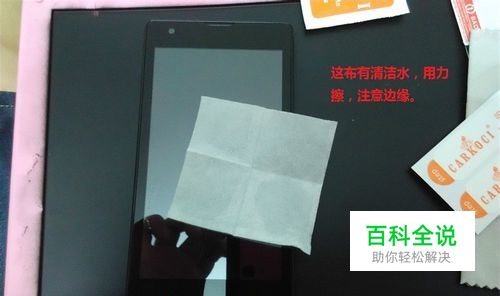 先用 清洁水布 将手机屏幕完全擦干净,特别注意四边边缘。
