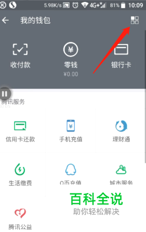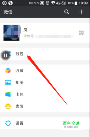 点开微信——我,打开钱包选项。