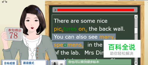 读完一句后不要看看多少分,只要是全是绿色,就不要管他了,直接下一句,要是红色或者橙色【即黄色】(哪怕有一处,如下图)的话请立即按下 暂停跟读。速度要快,跳到下一句就刷不了了。