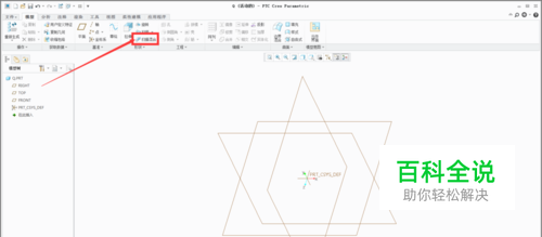 混合扫描指令与扫描指令类似,都需要先在基准平面上画出草绘图。如下图所示点击“基准”,之后点击“草绘”,进入草绘平面