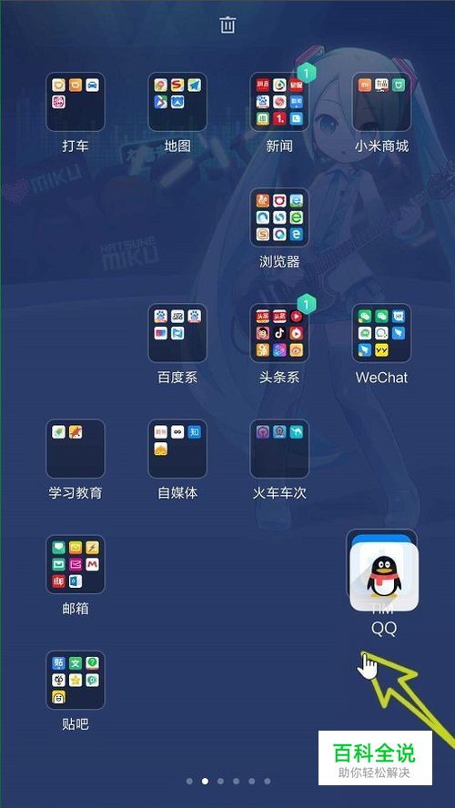 可以通过把一个图标拖动到另一个图标上面,来建立一个文件夹,我们这里把qq拖动到tim上面,如下图所示,