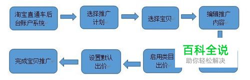 1、 直通车 A、 直通车概念:淘宝直通车是一种展示免费,点击付费,根据您的直通车设置,将您的宝贝展示给潜在买家的推广工具。 B、 直通车基本操作流程: