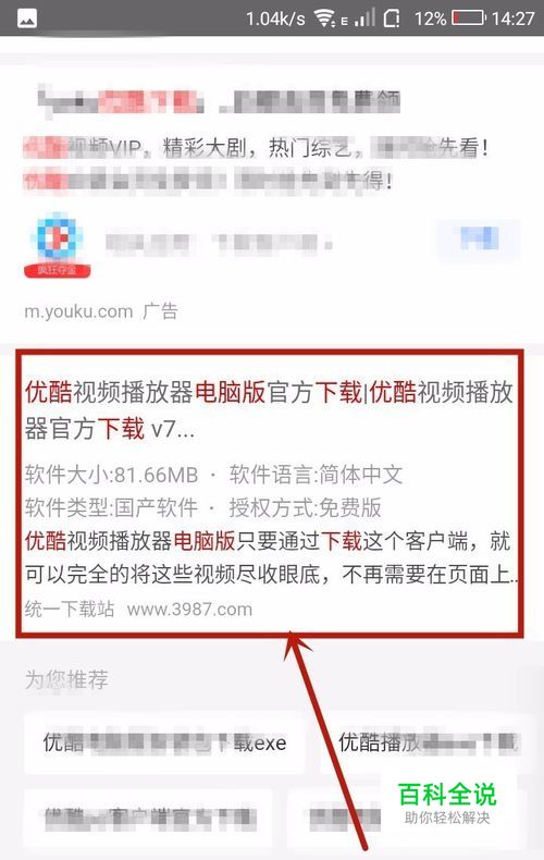 拿起手机打开浏览器输入“电脑版优酷下载exe”