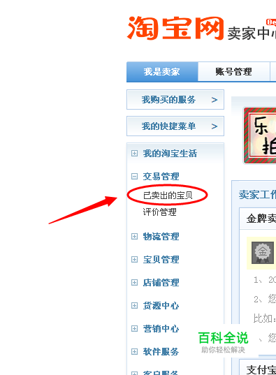 在“卖家中心”的最左侧找到“交易管理”——“已卖出的宝贝”