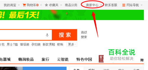 首先我们登录到淘宝网,在网页右上方点击“卖家中心”