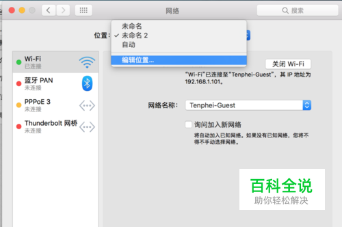 在网络面板里上面有个位置栏,点击下拉菜单中的编辑位置。