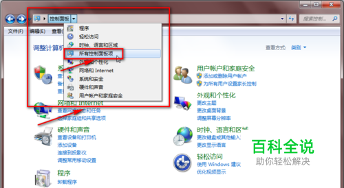 我们根据下图选择”所有控制面板项“,界面显示如下: