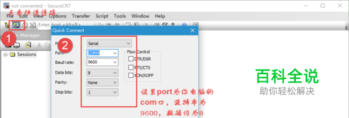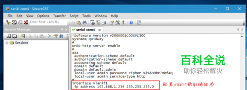打开SecureCRT软件,通过console口配置华为交换机的vlan1的ip地址为192.168.1.254或者其它网络地址(172.16.110.1),子网掩码为255.255.255.0。