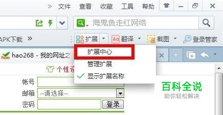 打开 360浏览器,找到右上角的扩展,选择 扩展中心并打开
