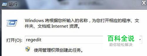 1、在win7系统下用快捷键Win+R键直接打开运行对话框,然后我们在运行窗口输入栏中输入命令regedit直接回车键,打开注册表编辑器设置窗口;
