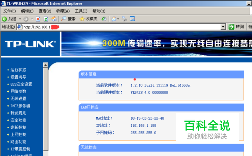 首先用准备好的网线一头插入无线路由器的lan口(一般蓝色为wan口) 一头插入自己的电脑网卡上。在浏览器上输入无线路由器的web管理地址 我以tplink为例子。首先把自己电脑的IP改为192.168.1.*(*为2-255 因为我原先是192.168.100.* 改为1段的跟路由器一个网段)默认地址为:http://192.168.1.1 用户名admin 密码admin 登录成功进入如下页面