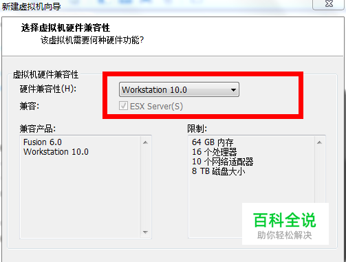 这里我的虚拟机版本最新是10的,就选最新的,然后点击下一步,如下图: