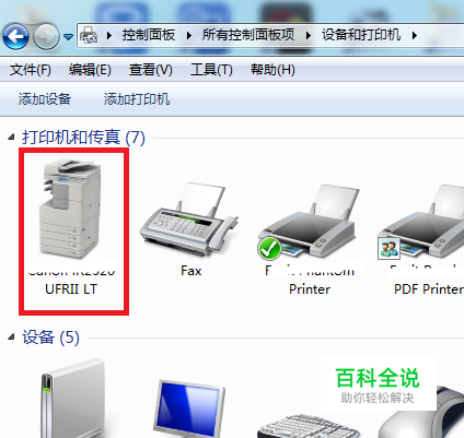 在电脑操作系统,打开“控制面板”找到设备和打印机选项。