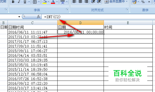excel中如何从日期时间格式中提取日期和时间