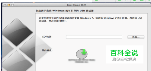 打开bootcamp,选取 “创建windows7安装盘”,点继续