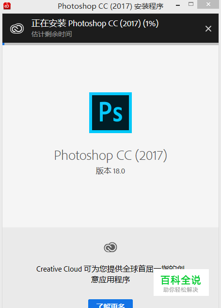 在安装ps cc时可以更改安装路径,但在ps cc2017版本安装时是通过Adobe Creative Cloud(Adobe系列更新软件)安装的,所以在安装ps cc2017时显示直接静默安装。不过我们还是可以用别的方法更改安装路径。