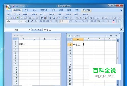 打开后的excel1和excel2,它们分别在单独的两个窗口上展示,大功告成。