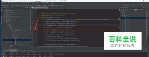 打开IDEA项目,以DEBUG的模式运行项目,如图所示,本例项目为Maven项目,通过如图所示的DEBUG按钮以DEBUG模式运行项目。