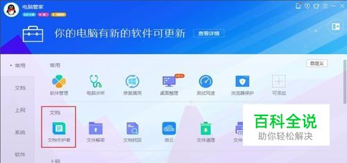 打开电脑管家,在“工具箱”选项卡中找到“文档守护者”,点击一下就会自动载入文档守护者这个功能。