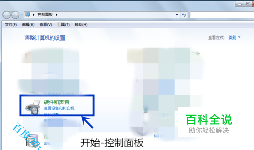 这里介绍通过控制面板进入打印机管理界面,还有其它方式可以进入,不一一介绍,条条道路通罗马。在开始界面中找到控制面板,点击进入控制面板,然后找到硬件和声音--查看设备和打印机。