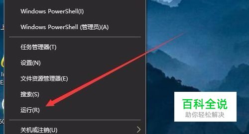 在Windows10桌面,右键点击桌面左下角的开始按钮,在弹出菜单中点击“运行”菜单项。