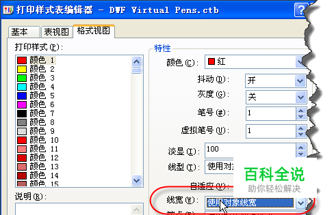 第二种方法是作用颜色进行线宽设置。建议大家不要设置太多的颜色 1-7号的颜色就可以,选择好颜色后,再重新设置线宽。保存设置就可以了。