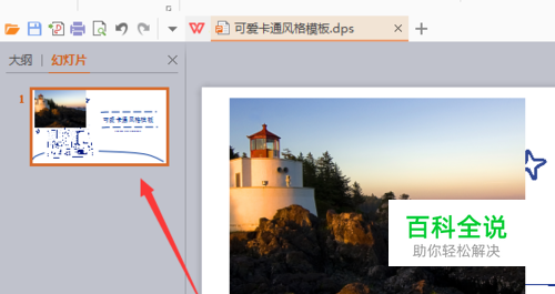 首先,进行打开一个wps的文件软件当中,进行选中一个幻灯片。