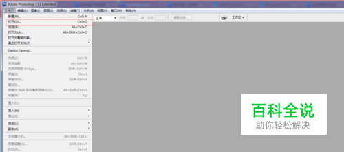 首先,点击桌面已下载好的photoshopcs3软件,点击打开,然后点击photoshopcs3标题栏左上角的文件,点击打开,在弹出的窗口中点击“打开”,或者快捷键【ctrl+o】打开。(如下图)
